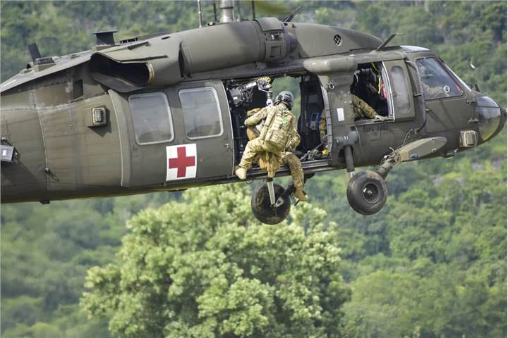 阿信在直升機上接受有戰場實戰經驗的急救醫護人員緊急處理、然後送到美軍基地醫院開刀